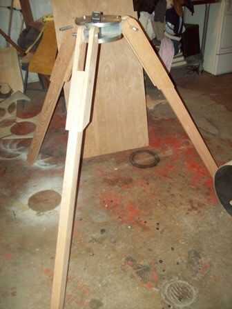 Las patas del trípode se acumulan de roble tableros desechados como chatarra por un vecino de suelo. Son tan largos como el corto pedazo tan abou 48" l.