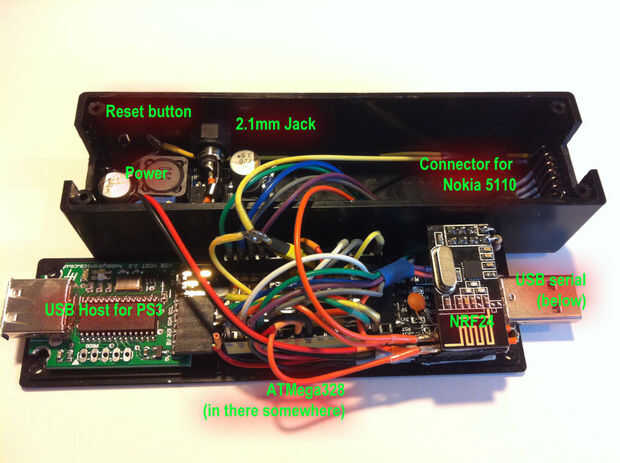• Un pequeño como sea posible por lo que era conveniente mantener y resto no solo en una mesa. El ideal era una caja de proyecto fina que correa/pude conectar a la parte inferior de un controlador de PS3 convencional.