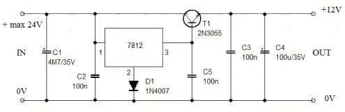 Paso 1: 18V a circuito de regulador de Voltaje 12V