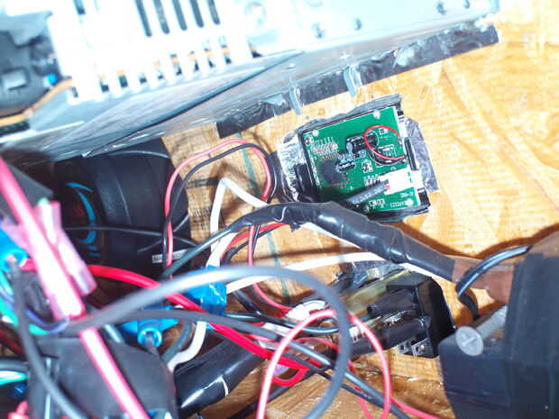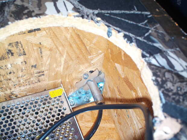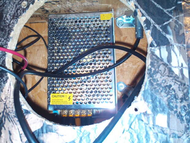 Aseguró el cargador en la parte inferior de la caja, utiliza un par tornillos alrededor del transformador para el cargador para mantener en su lugar y había pegado al extremo de un cable de extensión que es cómo funciona el cargador.