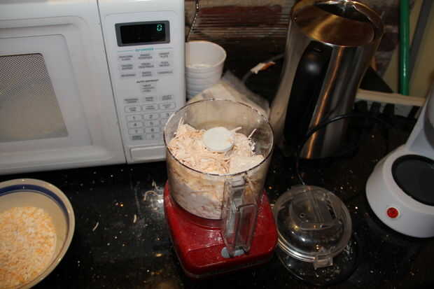 Ahora simplemente combinar todos los ingredientes en el procesador de alimentos (o en un tazón de fuente primero, si su procesador de alimentos 's muy pequeña). Pulso hasta desmenuzable.