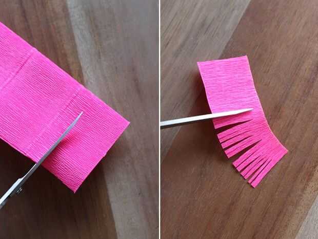 estambre con flecos. El grano debe ir verticalmente, a lo largo del borde más corto del papel. Cortar un flequillo, dejando sobre un 1/4 base.