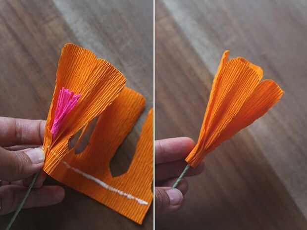 Rollo de los pétalos alrededor del estambre plisar los pétalos como vas.