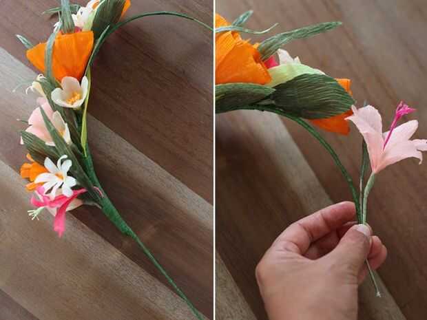 Ahora repita en el otro lado. Comience en el centro otra vez con las flores hacia el centro de la U en forma de alambre.