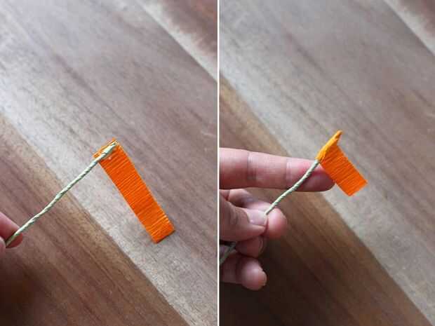 Para una Margarita, todo lo que necesitas es una tira pequeña de papel crepe anaranjado para hacer