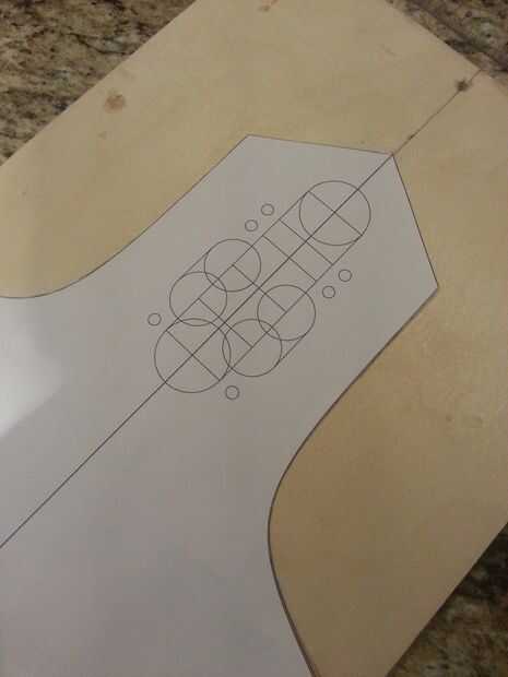 Nota: para agujeros de mi carro, encontré algunas fotos en línea pero se dio cuenta de que quería hacer mis propias medidas, por lo que basado en mi plantilla de dimensiones de mi carro. Si usted está haciendo una cubierta regular de montaje superior, no necesita todos los agujeros de lujo. Sólo cuatro 3/16 hoyos donde se insertarán los tuercas y tornillos para unir la cubierta y los camiones.