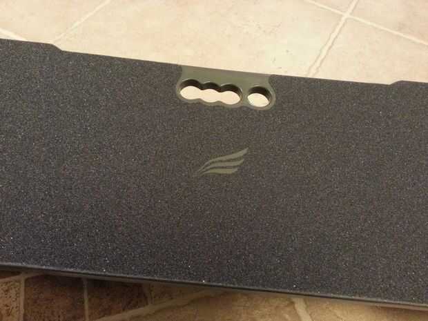 Luego, coge la cinta del apretón y lenta y cuidadosamente pegue la cinta de agarre en su cubierta, asegurándose de que no deje burbujas de aire entre la cinta y la cubierta.