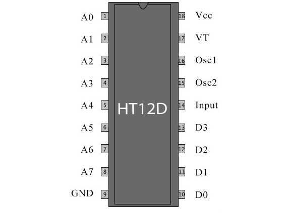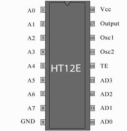 ambos son 18 pin ics, el codificador es alimentar con nuestros datos en paralelo a sus cuatro pernos que se convierte en forma serial y transmitida a través de la transmitter.receiver recibe los datos en esta serie y alimenta al decodificador ic que convierte otra vez para data.i en paralelo han añadido imágenes para mostrar la configuración de pines.