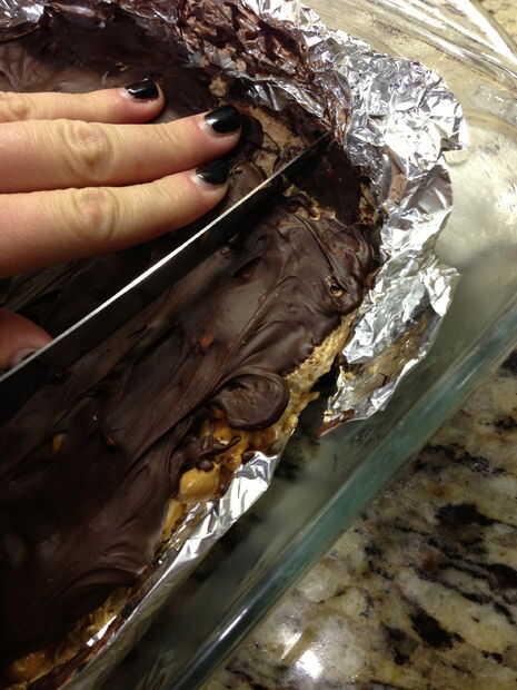 Retire del congelador. Permitir que las barras ablandar durante 20 minutos, luego cortar las barras en tamaño deseado y disfrutar. Para el almacenamiento, mantener refrigerado en un recipiente hermético.