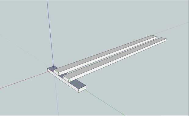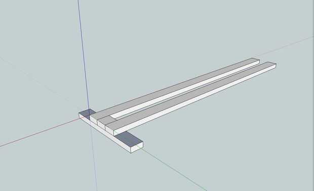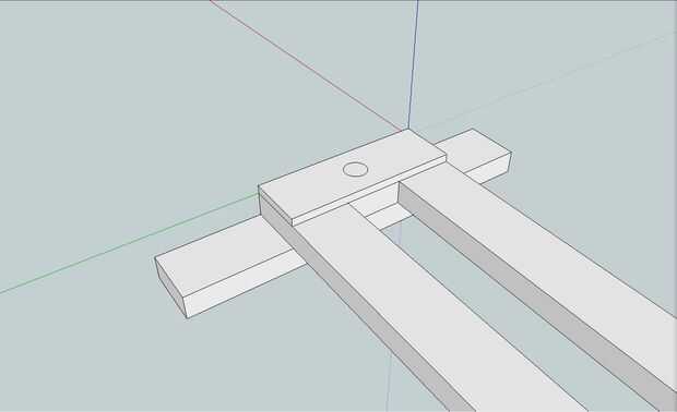 Colocar una viga larga de 22" por debajo. No conecte. A continuación, coloque una 3 1/2 "x 3 1/2" entre las vigas de largo. Colocar una viga de 1/2" de espesor y conecte a las dos vigas más largas. Entonces, perfore por el medio de la viga gruesa de 1/2" a través de las tres capas. Poner un tornillo en el y apriete. La viga inferior debe girar.