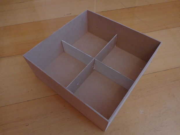 Mi caja viene con una cubierta y una "Cruz", que divide el interior de la caja en cuatro espacios más pequeños.