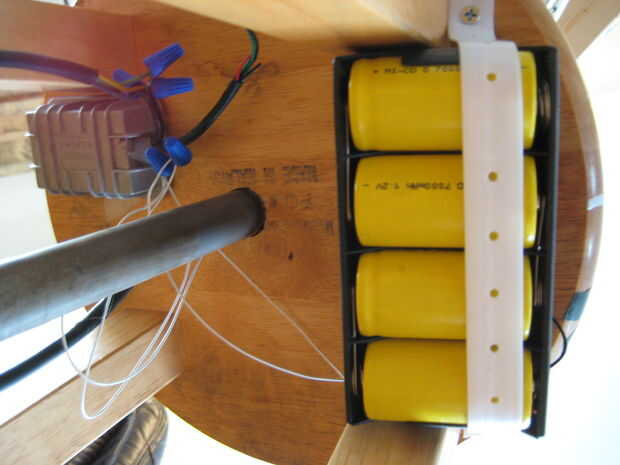 Monte el regulador del eje motor y batería de 8 celdas (cada nicad = 1,2 voltios, total ~9.6 voltios)