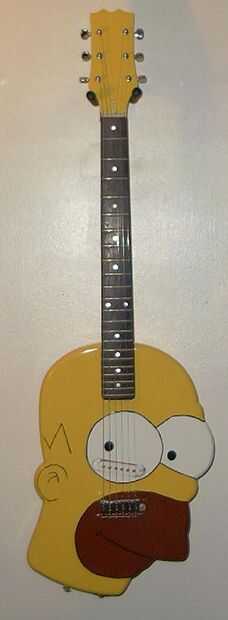 te voy a mostrar cómo hice una guitarra que se parece a Homer Simpson. No es el mejor sonido o tocar la guitarra, pero no era el punto. Sólo quería una guitarra mira divertida para colgar en mi pared. El cuello es una basura guitarra Hondo que me dieron gratis. Quería tener un pickup de bobina única manera que podrían caber enteramente dentro de su ojo.