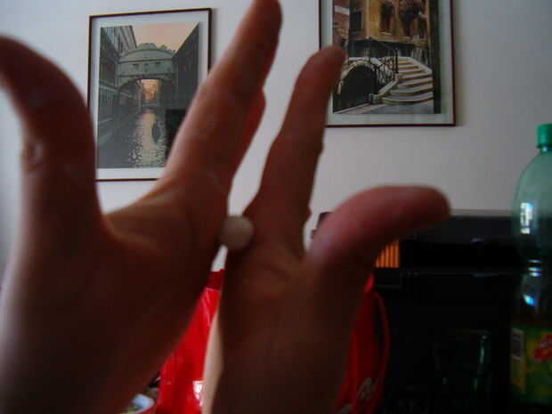 esto es Don Johnson, vago de la playa... Lo hice de un surtido de encontrado y tienda de compras: 1. casco de seguridad infantil de espuma de poliestireno - cara y parte superior de la cabeza, 2. una bola de espuma de poliestireno - la parte posterio