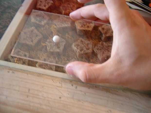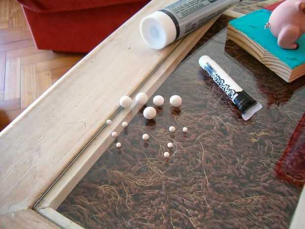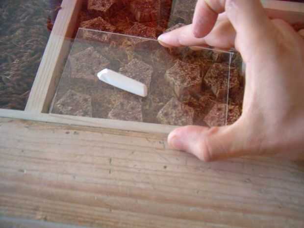 Amasa un trocito con un acrílico (permite ver a través) y cortar de igual medida.