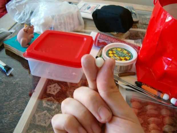esto es Don Johnson, vago de la playa... Lo hice de un surtido de encontrado y tienda de compras: 1. casco de seguridad infantil de espuma de poliestireno - cara y parte superior de la cabeza, 2. una bola de espuma de poliestireno - la parte posterio