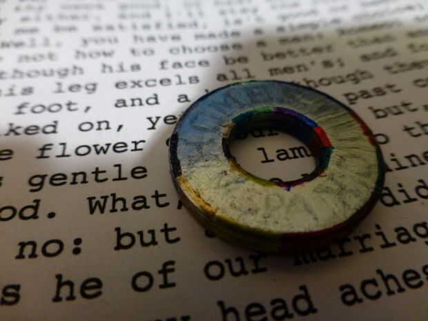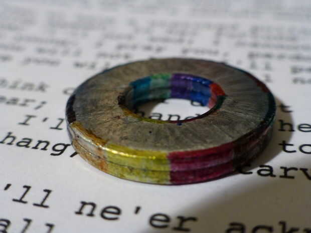 Nunca he probado algo como esto antes, y es un divertido experimento. He cometido algunos errores menores, pero realmente me gusta cómo salió y va a hacer más cosas como esta en el futuro. Tenía todos los materiales pero las dos arandelas que solía hacer el colgante, por lo que al final todo terminó me costando una friolera de $0,30.