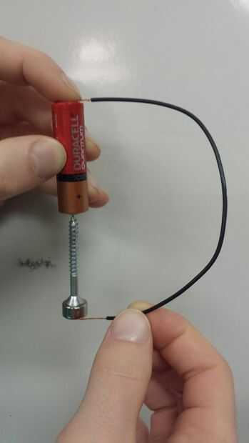 Toque el otro extremo del alambre hacia el lado del imán. El tornillo se gira ahora y rápidamente acelere!