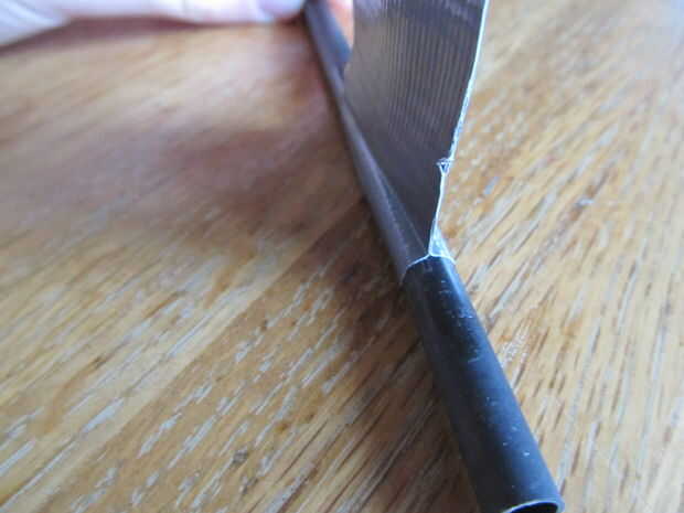calienta el tubo de pvc blanco y curvado alrededor de una rueda de bicicleta, luego en el medio en el borde exterior del pvc calentado para arriba y lo aplana y luego péguela en el arco como se muestra en las fotos y luego agregado cadena como se ve