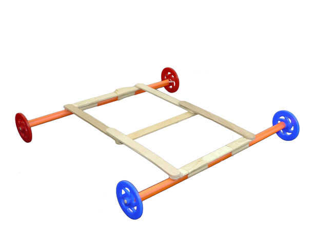 Puede que necesite dar ayuda práctica a los estudiantes que están teniendo problemas para montaje de una rueda de plástico en un pincho. Si está siendo particularmente obstinada, utilizo mi cortador de madera para corte el extremo de la brocheta un poco para que la rueda se ajusta fácilmente.