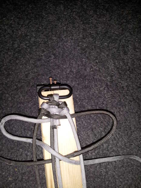 Deslice la cadena derecha perdida sobre el lado externo de la derecha, en el centro dos, entonces sobre la hebra izquierda exterior.