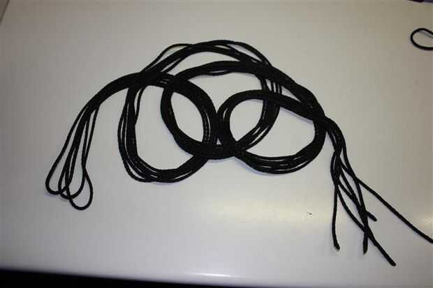 Una vez dejé la longitud correcta usé un pedazo pequeño de paracord para marcar el cable. La próxima cosa a hacer es cortar el cable. Puesto que estoy haciendo una trenza plana de 6 filamento, necesidad de filamento 6 pero lo que estoy haciendo será usar 3 cuerdas y convertirlos en 6 hilos.