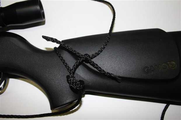 Para medir el lenth del cabestrillo y lo que hice fue libremente atar el cable en su lugar para que puedo llevar el rifle alrededor para probar la sensación. Es importante que te sientas cómodo con el arnés puesto que no es ajustable. Puede sentir tonta pero llevaba el rifle en la casa para conseguir la longitud adecuada. Si la eslinga es corto, alargarlo, acortarlo demasiado.
