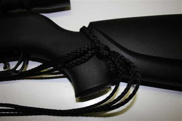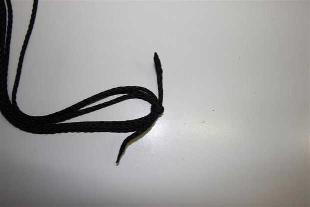 Una vez que haya suficiente trenza los extremos trenzados van alrededor de la parte posterior de la empuñadura para unir las trenzas. Para ello tejida entre el cable que el cable de un alineado como BFBFBF y acabar con el un nudo apretado.