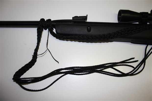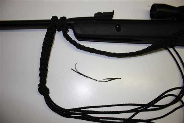 La correa es opcional y lo hice porque tuve algunos paracord dejó después el trenzado pero también Envuelva el cañón paracord continuando hasta abajo del trenzado.