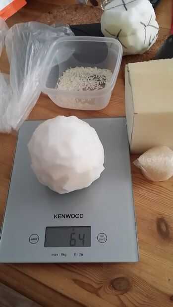 No quiero hacer un proyectil demasiado pesado. Si una persona es golpeada en la cabeza un proyectil pesado larp la cabeza o el cuello puede se lastime. Utilicé mis flechas de larp como guía y eran 72grams.