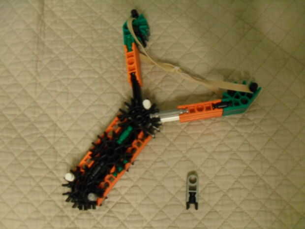 esto es algo que mi amigo y yo diseñado y hecho en cinco minutos. Con una pequeña manipulación, resultó para ser genial. Y como mi primera completo instructivo, me gustaría presentar la K'nex Mini conector hondero. Lo sentimos, no hay video, si quier