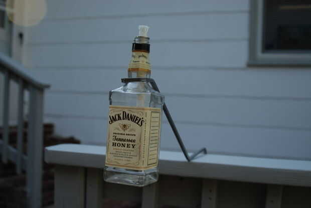 Terminé haciendo un par de viajes a the Home Depot, Lowes y algunos otros de las ferreterías en busca de una mejor idea de soporte. No veo nada que me ha gustado mucho así que pensé que haría algo. La idea que llevaba era para colgar la antorcha tiki de la cubierta y para hacer que vieron algunos sostenedores de plantador de la flor. Me gusta el look de hierro forjado y creía que lo sería un buen partido para una botella de Miel de Jack .