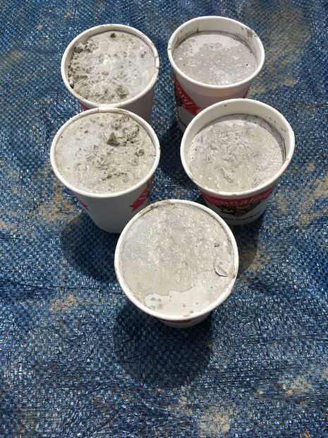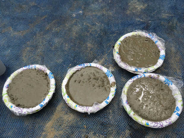 • Mezclar y verter el concreto en los tazones de fuente de papel