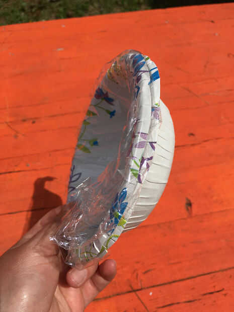 • Envuelva el tazón superior en plástico (esto detendrá el papel se pegue al concreto como cura)