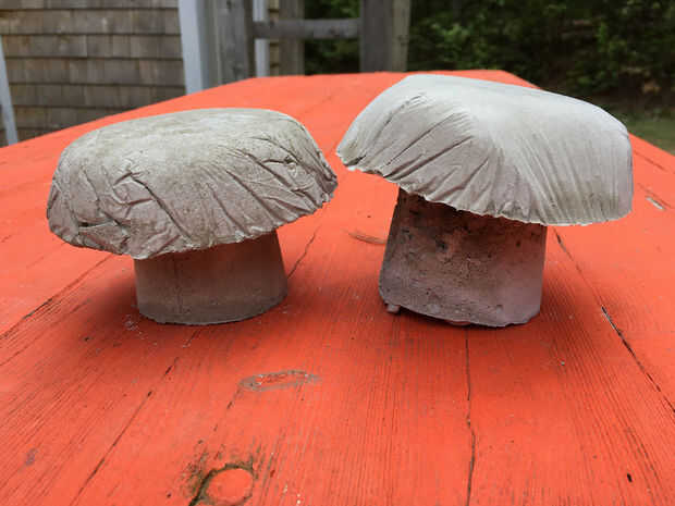 Hongos secos completamente pueden ser hormigón llano a la izquierda o pintados (he tenido éxito con la pintura de arte y pintura en aerosol)