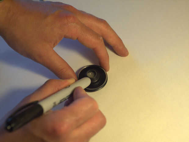 Utiliza unos lentes limpiador para eliminar el hongo de la lente. Este limpiador de lentes también apareció eliminar a algunos de lo ennegrece alrededor del borde de la lente.  Usé un marcador permanente negro para volver a llenar las partes.
