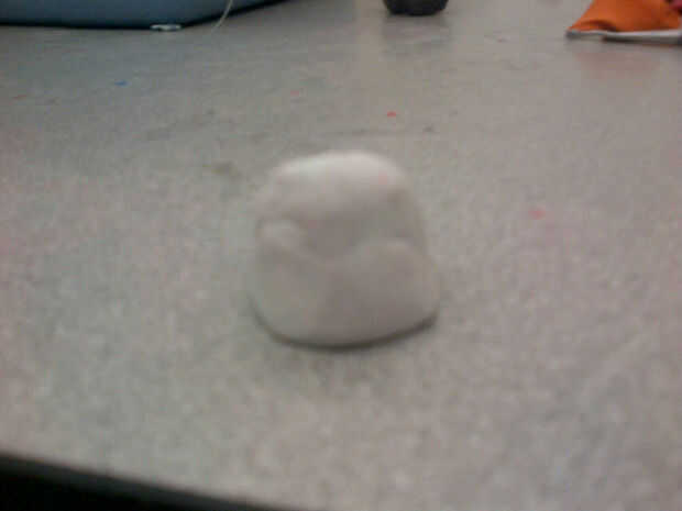 Primero tome un pedazo de arcilla blanca, rodar en una bola y aplanar la parte inferior de la misma.