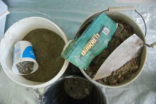 Fuentes:Paso del moldeDesmoldante o aceite vegetal ligero y pincelTablas de Base de madera contrachapadaMáscara de partículas + guantes de gomaCHENG, al aire libre adición de Pro-fórmulaSakrete 5000 Plus mezcla de hormigónCarretilla de rueda o cuboMe