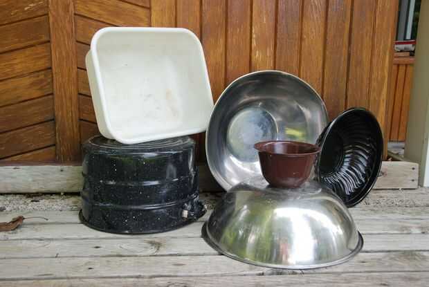 Materiales necesarios:HormigónCuencos de papelTazas de papelEnvoltura de plásticoUna olla grande o cacerola que nunca va a volver a usar para alimentosUn recipiente de plástico para el agua que probablemente nunca se utilizarán para cualquier cosa ya