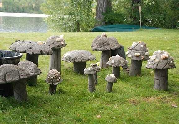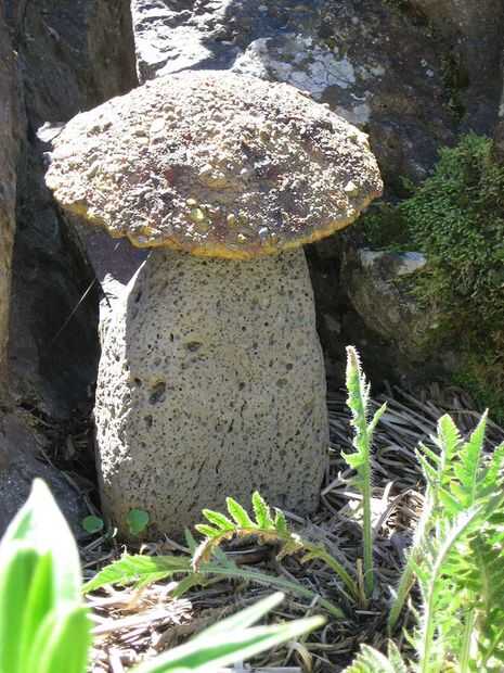 3. Las instrucciones de la bolsa de Creta rápida sugiere que debe curar el concreto, pero no hacemos esto. Las setas de pie en el patio a la izquierda y de vez en cuando los regaba con la regadera. Algunas de nuestras setas han sido fuera en el patio norte y jardines para 2-5 años y nunca han agrietado o desintegrado (este proyecto es muy divertido - lo hemos hecho varias veces).