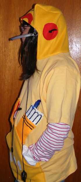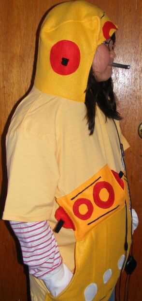 Además del bolsillo principal handwarmer canguro, observe que la cabeza del Robot se duplica como un compartimiento para poner el IPod y la mano es otro bolsillo para colocar otros elementos esenciales del geek.