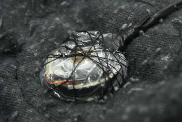 Después de coser dos cojines en, conseguir los altavoces y poner uno de ellos en el centro de la almohadilla en el interior de la campana. Luego, coser a través de los altavoces para que no se mueva. Poner la menor cantidad de pegamento de cena en algunos de los lugares donde los hilos se entrecruzan.