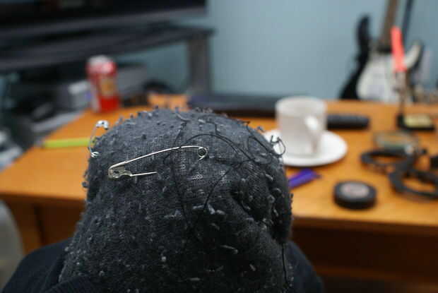 Coser el borde que está en las almohadillas de auriculares en la capucha. No coser nada, pero el labio, o bien el cojín no se ajusta alrededor de la oreja.