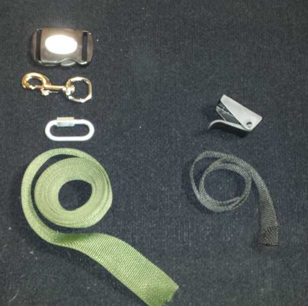 - Varios pies de 2" amplia web para embalaje (el tipo usado en correas para perros comercial y arneses de alpinismo)
