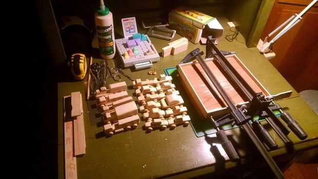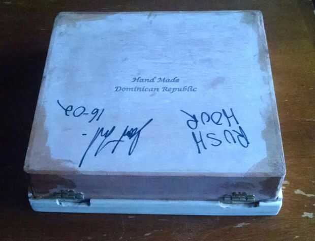 Pegué el lado de primera, con un borde de 1/2 y pulgadas. realmente el tamaño de mi labio se determinó por la tapa de la caja de cigarro. Yo quería que fuese incluso con él y el resto pegada. Cuando llegó el momento de encolar el frente y hacia atrás, tuve que muesca partes para las bisagras.