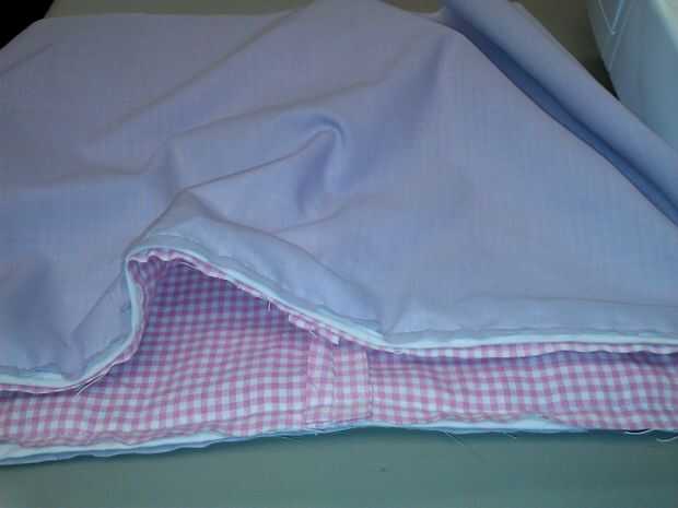 Cortar un rectángulo de cada impresión, 12 "x 30". Coser los extremos cortos junto con margen de costura de 1/2". Pulse las costuras abiertas. Coloque la uno falda dentro del otro, derecho lados juntos, coincidiendo las costuras posteriores, colocar el ojal ajuste entre las faldas, Pin. Coser alrededor del borde inferior de la falda con margen de costura de 1/3. Gire a la derecha falda hacia fuera.