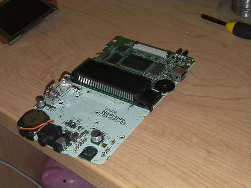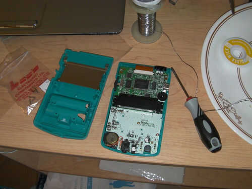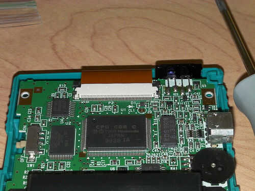 Comenzar sacando su sistema de Game Boy Color. Lo que necesitarás es un especial Destornillador Tri-Wingpara Desenroscar de la cañería exterior tornillos, como va reduciendo todo lo que es forma de chip de circuito desnudo.