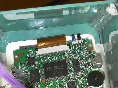 - Quitar la pantalla de Game Boy Color y cinta adhesiva en el interior.