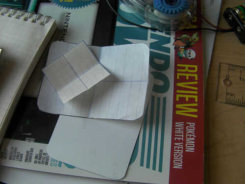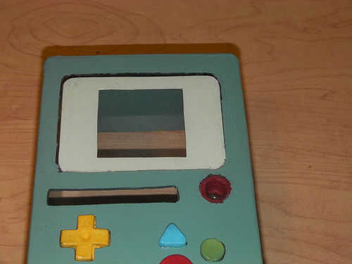 - Corte otra plantilla de Beemo cara de papel fotográfico. De esto cortaremos una 4 1/2 '' ancho 4'' de altura Plaza del centro, que luego utilizamos para rodear la pantalla de Game Boy Color.