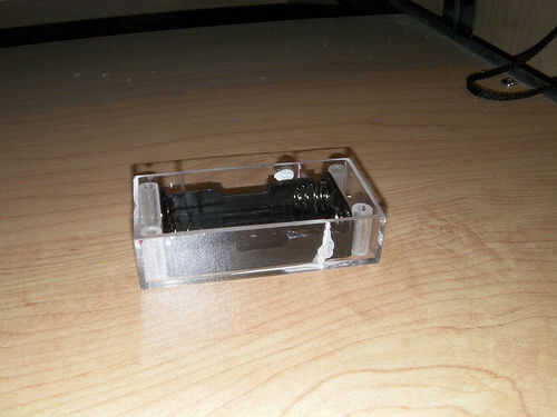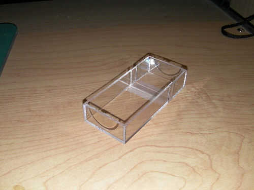 - La creación de la batería, utilizando el claro envases de plástico acrílico. Cortar 1 lado usando la herramienta Dremel para que el paquete de baterías puede encajar muy bien dentro de